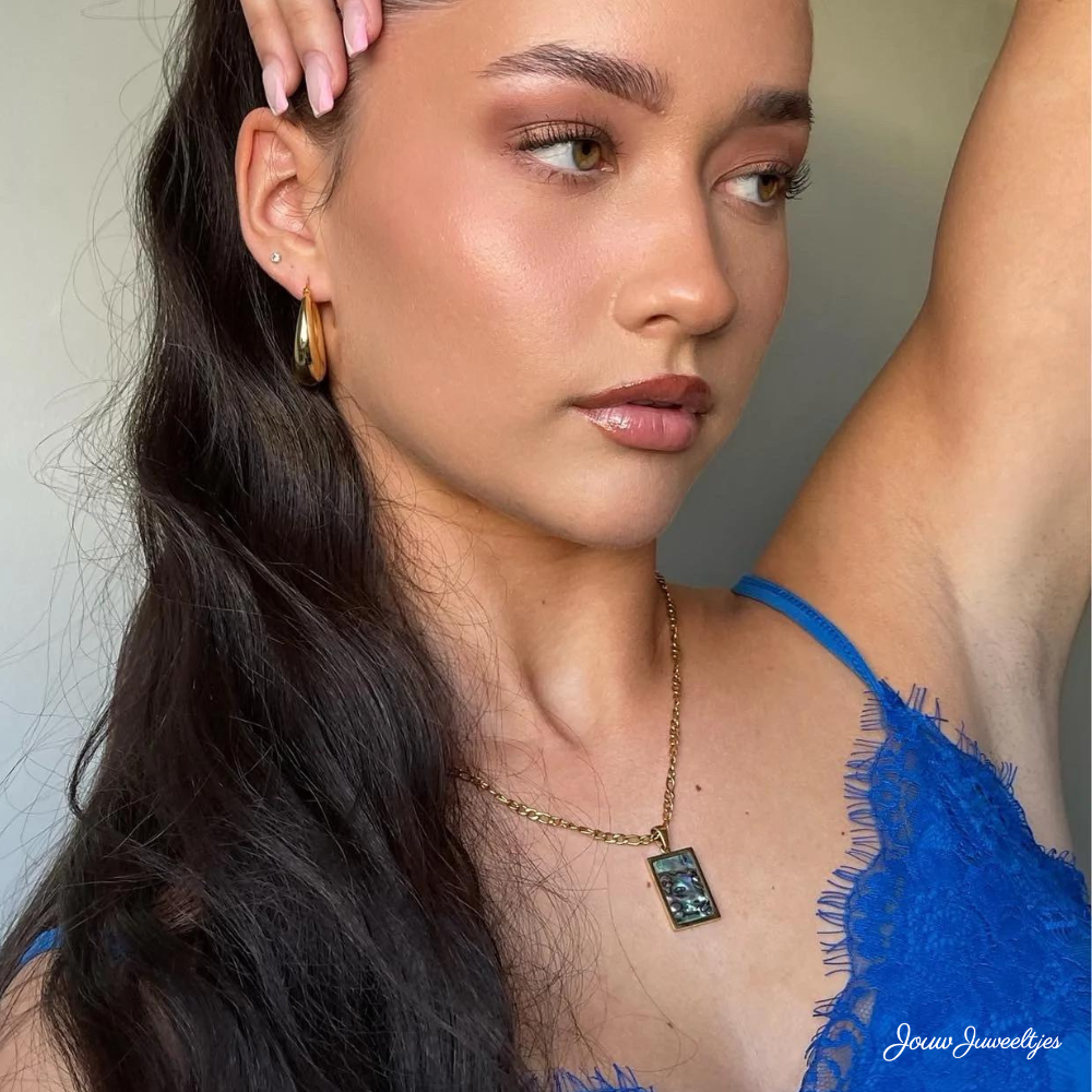 Ervaar tijdloze schoonheid met onze "Ethereal" Square Pendant Necklace, waar prachtige natuurlijke elementen samenkomen met de hoogste kwaliteit 18K goud. Elk vierkant hangertje schittert met een unieke natuurlijke edelsteen - parelmoer, onyx, malachiet, of de adembenemende Abalone schelp.