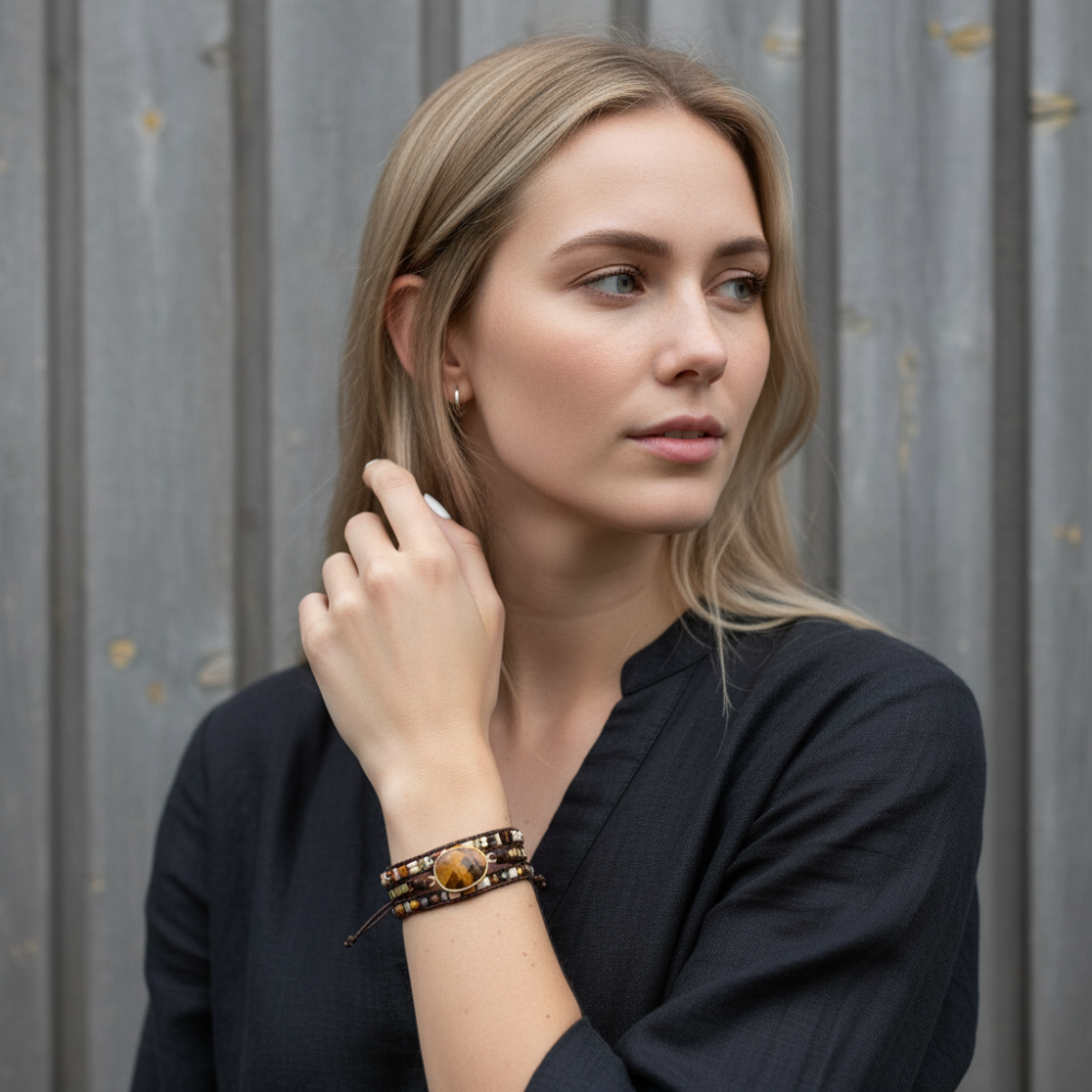 Onze juweeltjes worden gemaakt met hoogwaardige edelstenen en materialen, zoals leer of vegan wax koord. De specifieke samenstelling staat altijd vermeld in de beschrijving op de productpagina.