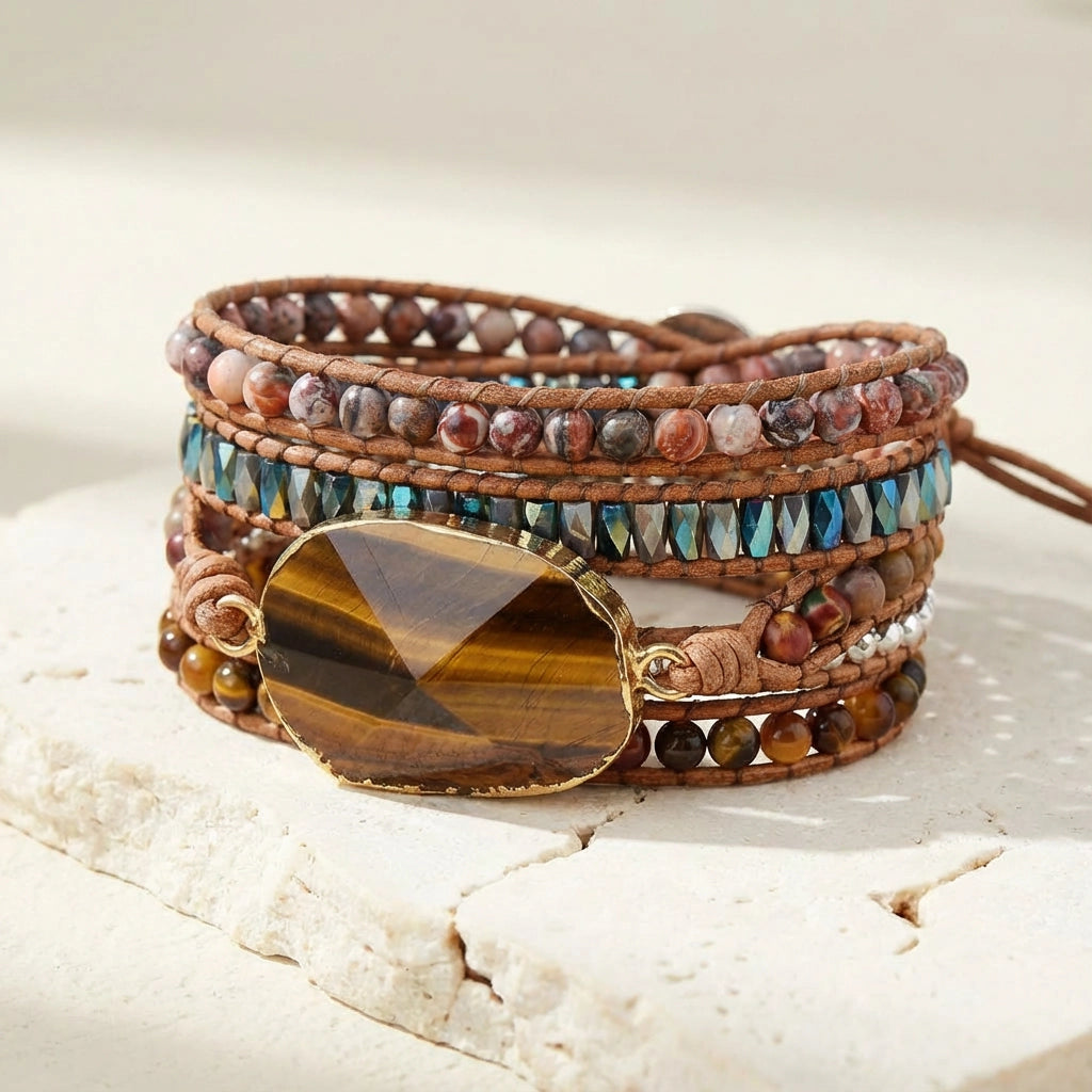 Stap in je kracht met onze Grounding Tiger’s Eye armband! Deze handgemaakte wikkelarmband, rijk aan kleurrijke stenen, omarmt jouw unieke energie en brengt balans in je dagelijkse leven.