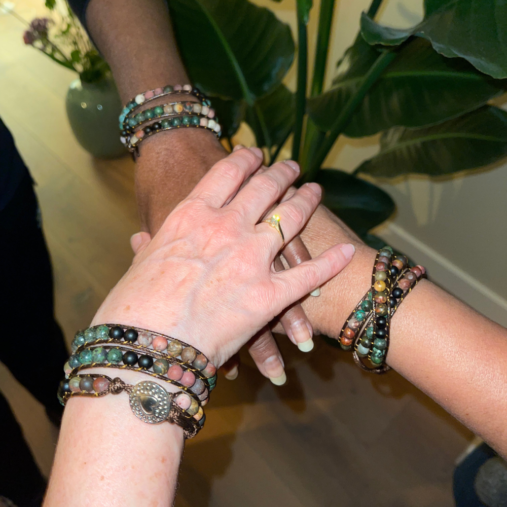Onze juweeltjes worden gemaakt met hoogwaardige edelstenen en materialen, zoals leer of vegan wax koord. De specifieke samenstelling staat altijd vermeld in de beschrijving op de productpagina.